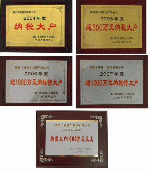 2009年3月3日,廈門(mén)市湖里區人民政府召開(kāi)“2008年度湖里區納稅先進(jìn)企業(yè)表彰會(huì )”,鷺燕集團再次榮獲“納稅超千萬(wàn)大戶(hù)”榮譽(yù)稱(chēng)號,這是鷺燕集團自2006年以來(lái)連續三年成為“納稅超千萬(wàn)大戶(hù)”。