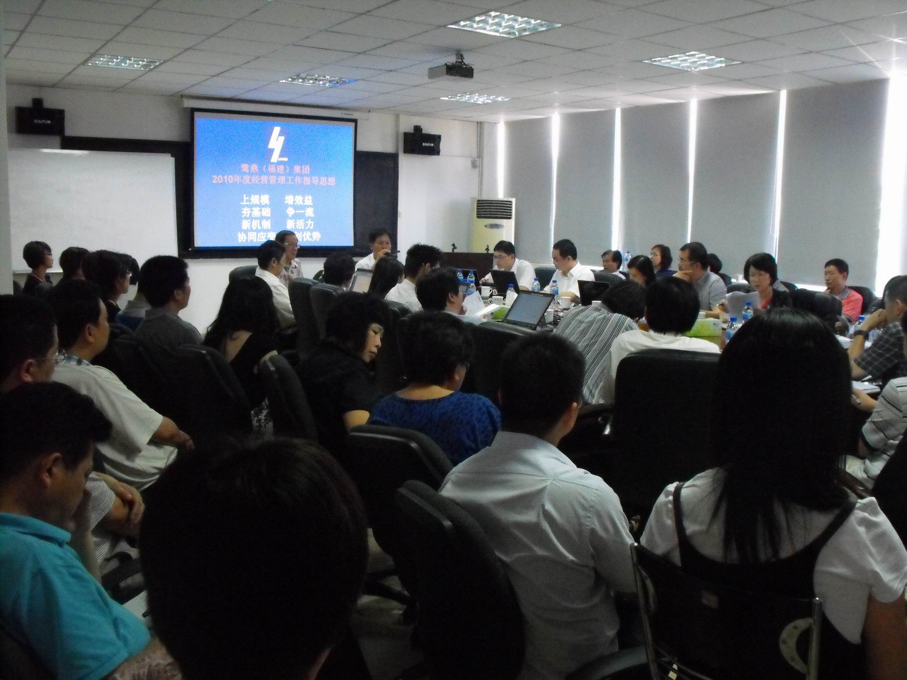 2010年7月31日至8月1日,鷺燕(福建)集團2010年上半年經(jīng)營(yíng)管理會(huì )議在廈門(mén)總部勝利召開(kāi)。參加會(huì )議的有股東代表、集團領(lǐng)導及職能中心負責人、各成員公司高管團隊。會(huì )議總結了集團及各成員公司上半年工作情況,并就下半年及未來(lái)工作計劃進(jìn)行了安排。會(huì )議在務(wù)實(shí)、高效、充滿(mǎn)激情的氣氛中完成了各項議程,充分體現了鷺燕人“自強不息、追求輝煌”的良好風(fēng)貌。